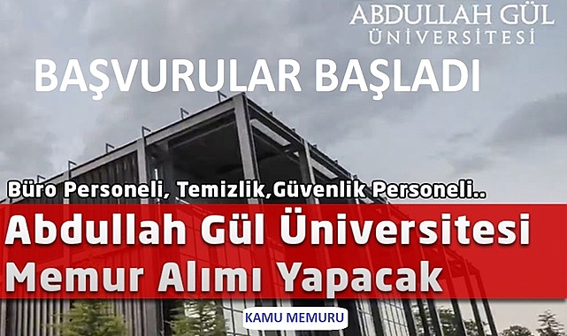 Başvurular e-Devlet Kapısı üzerinden ‘’Abdullah Gül Üniversitesi-Kariyer Kapısı Kamu İşe Alım’’ hizmeti adresi üzerinden 28.04.2023-12.05.2023 tarihleri arasında alınacaktır.