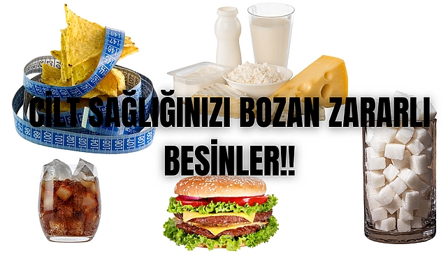1. Süt ÜrünleriPeynir çeşitleri, yüksek yağ oranlarına sahip olması nedeniyse cilte ve vücutta iltihaplanma durumu var edebilir. Süt ise, ciltte yağ üretimini tetiklemesine, sivilce soruınlarının artmasına neden bir androjen barındırmaktadır. Ayrıca, süt ürünleri genel olarak deri kalınlığının artmasına da yol açmaktadırlar. Bu durum ise kilo alma ya da verme durumlarında derinin esnekliğini kaybetmesine ve çatlakların oluşmasına yol açmaktadır. 2. Fast Food Aşırı fast food tüketmek vücutta ve ciltte iltihaplanma sorununu tetikleyebilir. Bu iltihaplanma durumu ise kişinin bilmediği başka rahatsızlarını, egzama, sedef gibi çeşitli cilt rahatsızlıklarını etkileyebilir.3. Yüksek Şeker İçeren Gazlı İçeceklerİçeriğinde yüksek şeker şeker barındıran gazlı içeçecekler enflamasyon neden olmakla birlikte, cildinizin esnekliğinin azalmasına, çatlak sorunların artmasına, cilt sağlığının önemli ölçüde zarar görmesine yol açabilmektedir. 4. Yoğun Kafein AlımıKafein, nabız artışının artmasına, dehidrasyon sürecinin başlamasına yol açması nedeniyle cildinizde kuruluk var edebilir. 5. İşlenmiş Et Ürünleri İşlenmiş et ürünleri, içeriğinde yer alan yoğun tuz ve katkı malzemelerine bağlı olarak yüksek tansiyon, kalp rahastsızlıkları, Tip 2 diyabet gibi çeşitli sağlık sorunlarına yol açmaktadırlar. Ayrıca bu ürünler, vücutta ve ciltte yoğun enflamasyon var etmekte, vücudun, derinin ödem tutmasına yol açmaktadır.